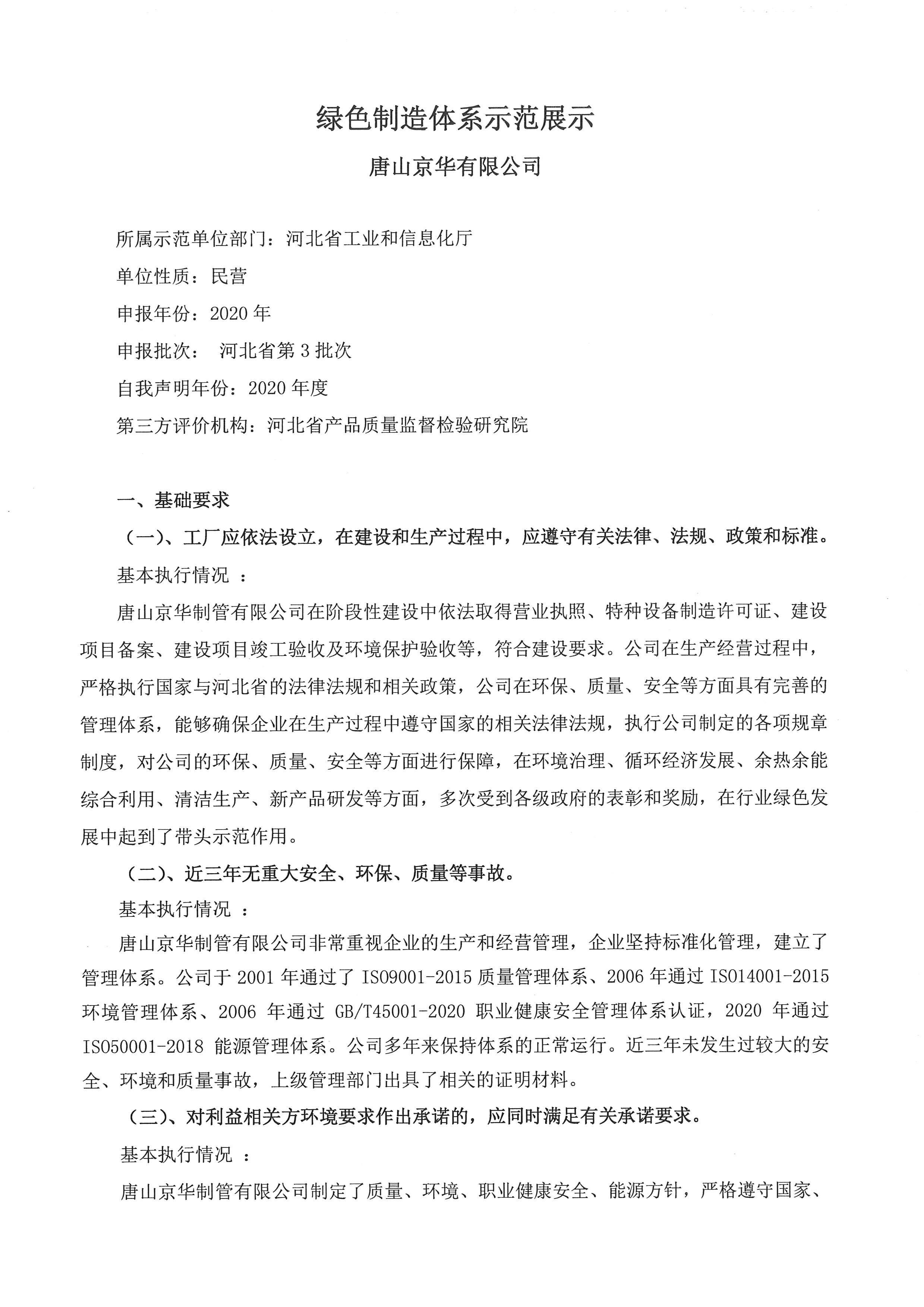 绿色制造体系示范展示--唐山京华有限公司